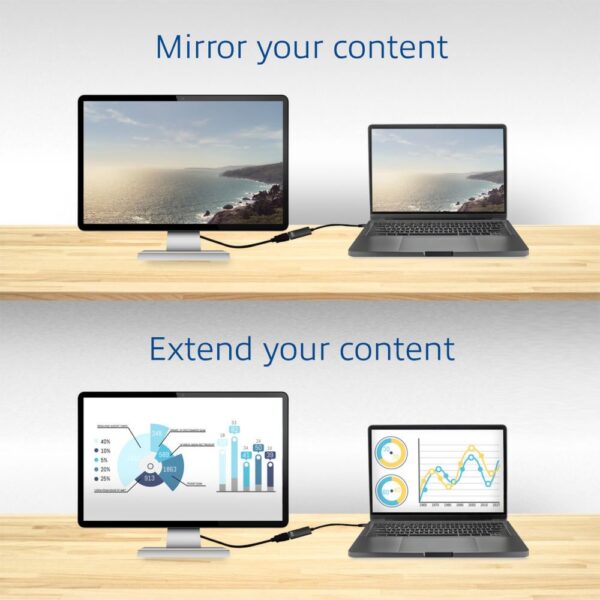 Met de AC7305 USB-C naar HDMI Adapter sluit je jouw notebook met USB-C aan op een beeldscherm of beamer met HDMI-ingang. De maximale ondersteunde resolutie is 4096 x 2160 (4K) @ 30Hz. Deze resolutie is ideaal voor het tonen van video’s, afbeeldingen, presentaties etc. Let er wel op dat je notebook een USB-C poort met DP Alt Mode ondersteuning heeft.