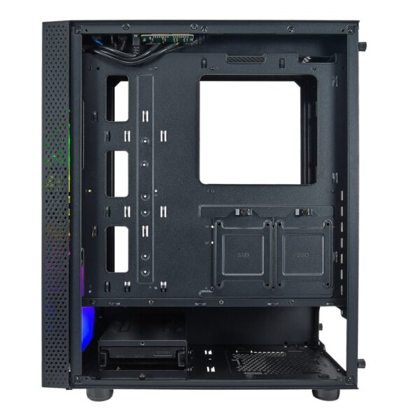 De Celesta ondersteunt ATX voedingen die onderaan worden geplaatst, wat zorgt voor een efficiënte warmteafvoer en een opgeruimd interieur. Met zijn ondersteuning voor zowel 2.5″ als 3.5″ HDD’s biedt het voldoende ruimte voor al je opslagbehoeften, of je nu kiest voor snelle SSD’s of ruime harde schijven.