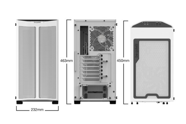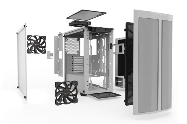 Het witte design van de Pure Base 500DX straalt eenvoud en stijl uit, waardoor het een tijdloze toevoeging is aan elke setup. Het minimalistische ontwerp past perfect bij zowel professionele omgevingen als gaming-opstellingen, en geeft een strakke uitstraling aan je systeem.