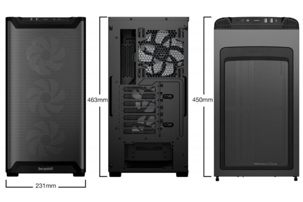 Ondanks zijn compacte afmetingen van 463 mm hoog, 231 mm breed en 450 mm diep, biedt deze behuizing verrassend veel ruimte voor krachtige componenten. Zo is er plaats voor grafische kaarten tot 368 mm lang en CPU-koelers tot 178 mm hoog. Bovendien kan de PCIe-slotstructuur worden gedraaid voor een optionele verticale installatie van de grafische kaart, wat niet alleen esthetisch aantrekkelijk is maar ook de luchtstroom kan verbeteren.
