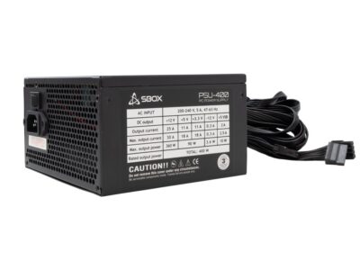 SBOX Voeding | 400W | 120 mm Fan | 140 mm Lengte | 24-pin + 4/8-pin CPU | 3× SATA | PCI-E 6-pin | Molex | Zwart Metaal | RETAIL