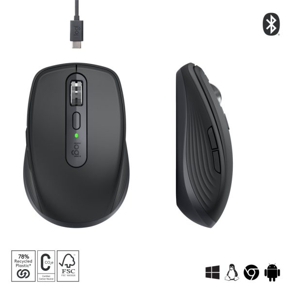 Logitech MX Anywhere 3S | Draadloze Muis | Rechtshandig | RF + Bluetooth | 8000 DPI | Grafiet